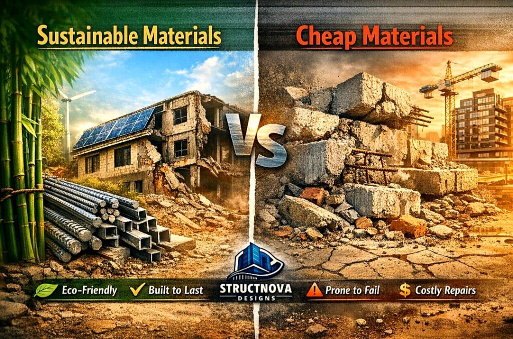 Cheap materials may save money today, but they cost more tomorrow. Sustainable materials are investments in safety, durability, and the environment.